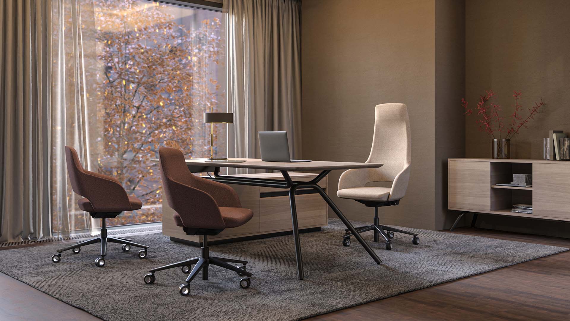S rostoucí popularitou hybridního pracovního modelu práce v kancelářích je stále více vyhledáván nábytek, který je nejen funkční, ale také pomáhá vytvářet příjemnou atmosféru. Křesla a nábytek do obývacího pokoje, které umožňují relaxaci i produktivní práci, zajišťují pohodlí v různých částech kanceláře. V reakci na tyto trendy jsme s našimi dlouholetými partnery, designovým studiem Baldanzi & Novelli, vyvinuli další exkluzivní produkt. Jejich nejnovější tvorba je inspirována dynamickými pracovišti, kde zaměstnanci tráví stále více času nejen u svých stolů, ale také v zasedacích místnostech a relaxačních zónách.