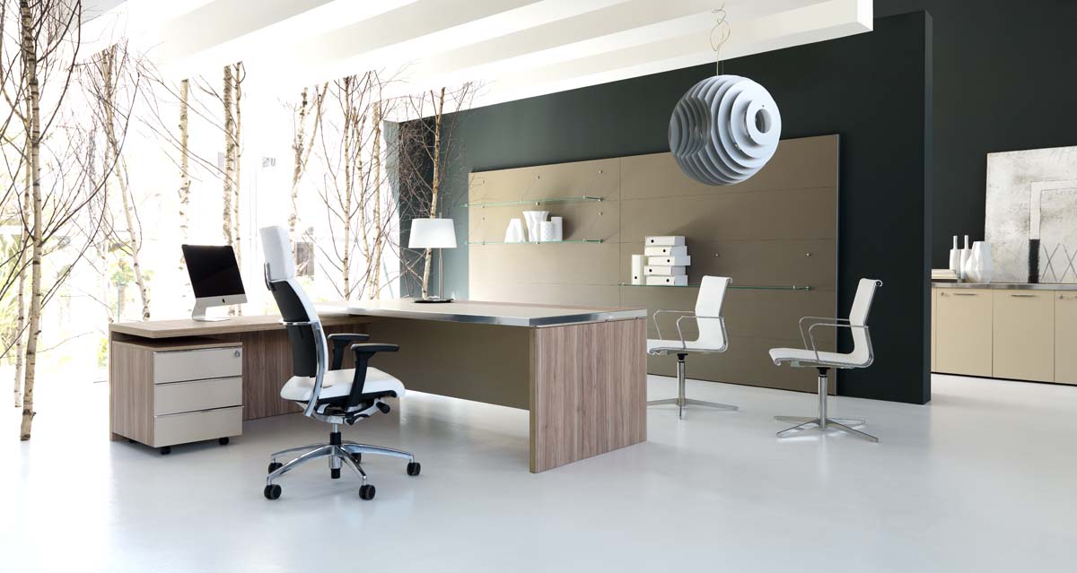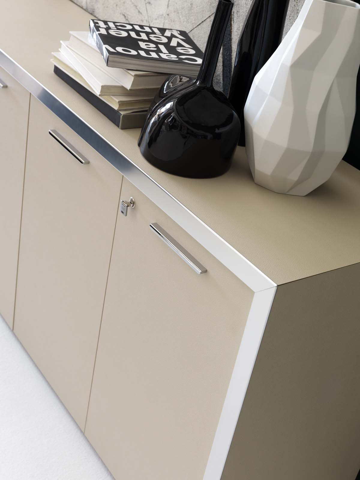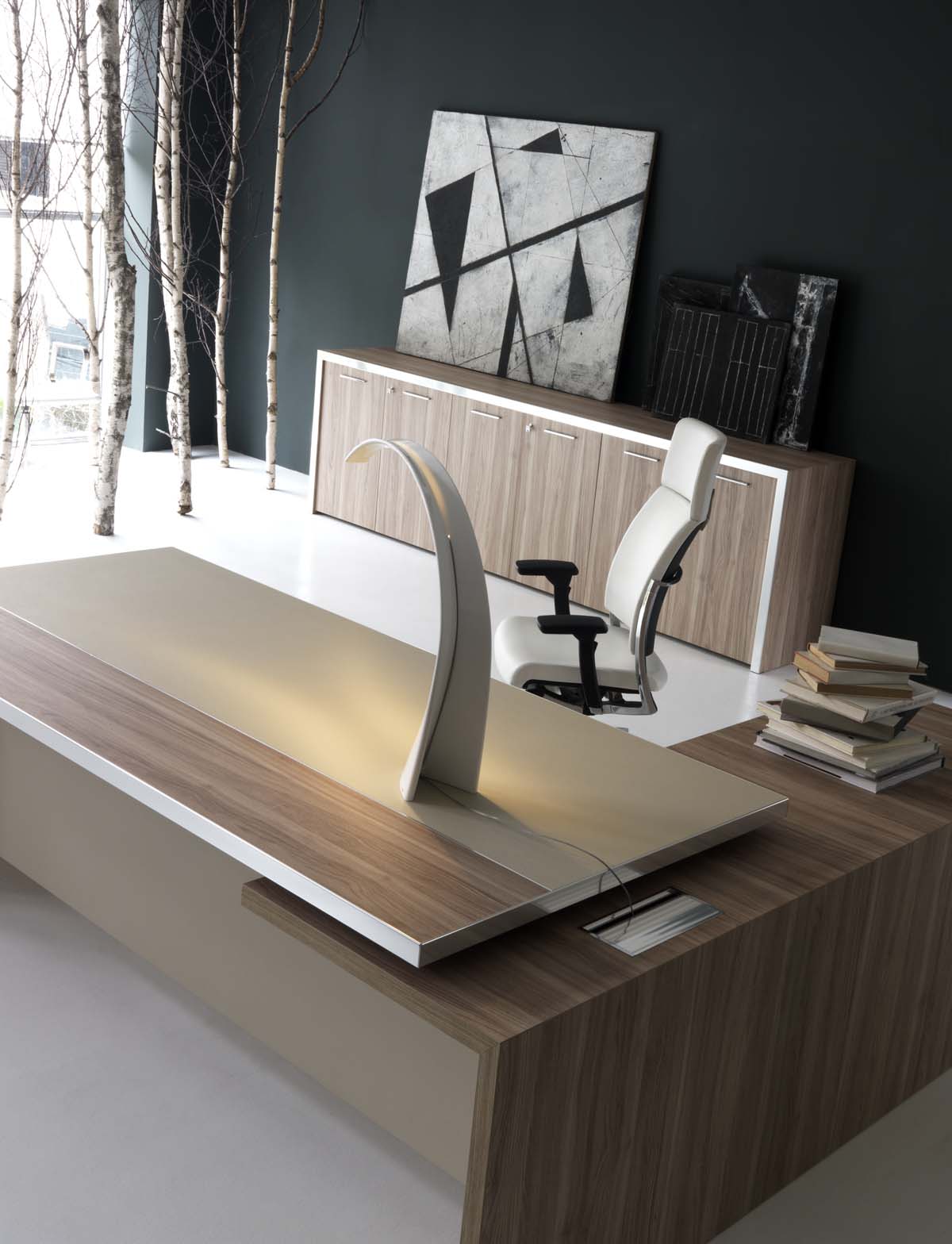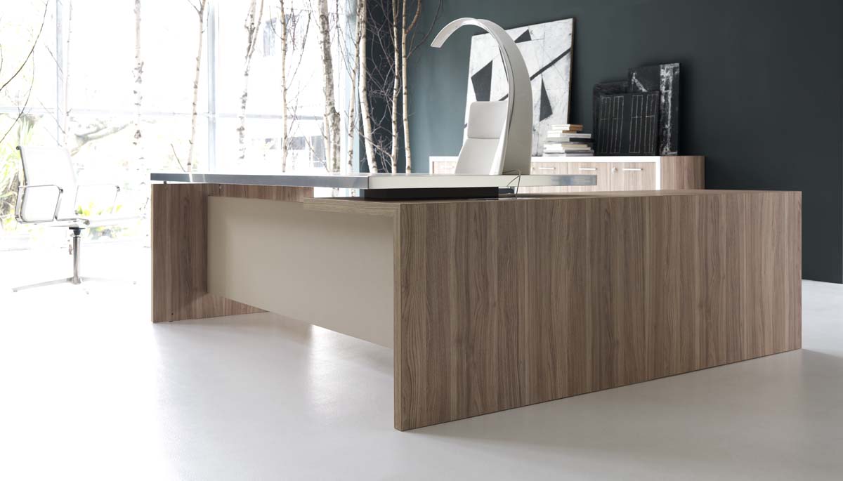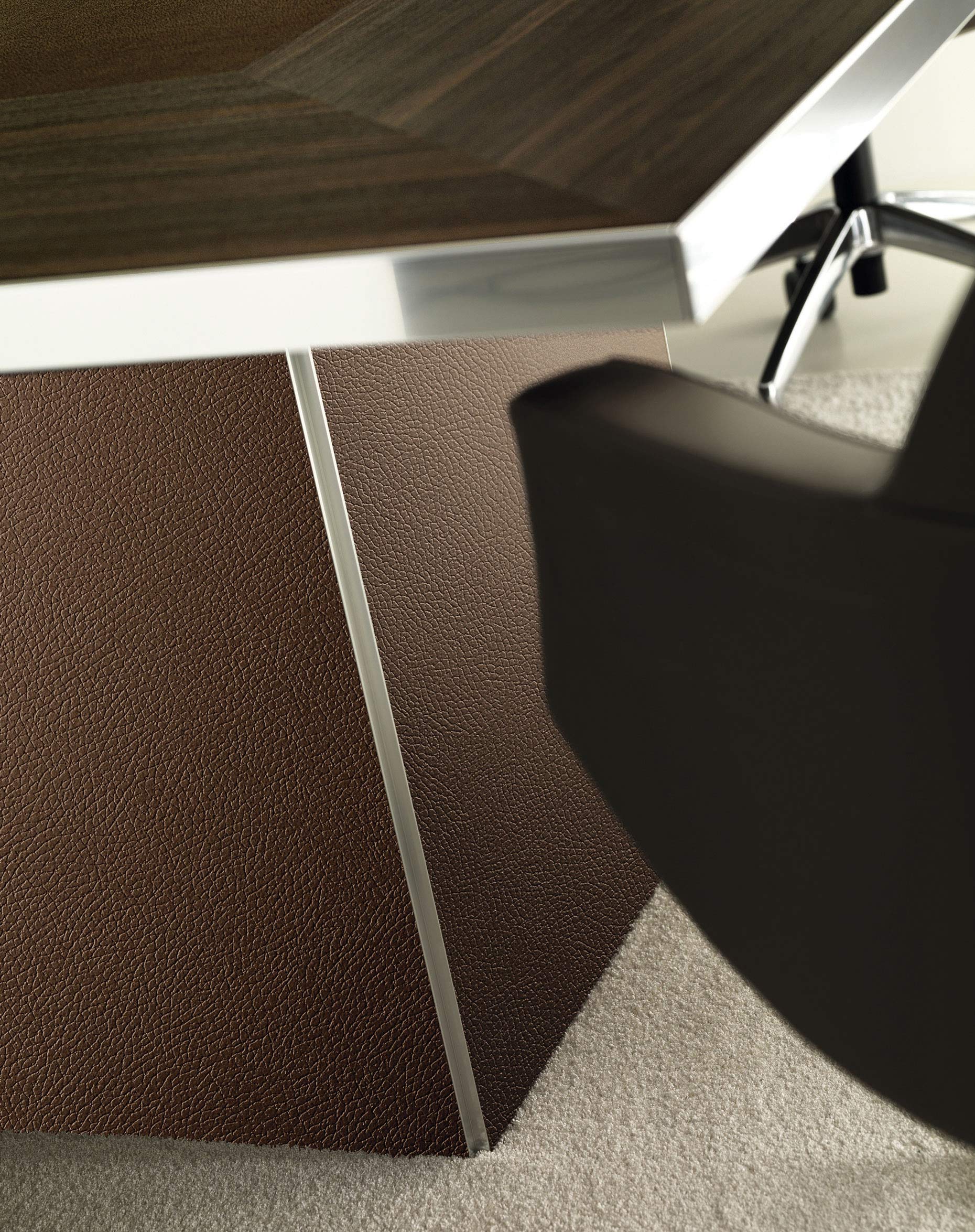 Manažerský nábytek ARA - přírodní vhled materiálů. Neočekávané kombinace textur dřeva, kůže a chromu. Energie a kouzlo materiálu sledující lineární vzhled eklektické sbírky harmonicky spojují tvary, materiály a technologie. Řada Ara promění každý prostor v designově nápadný a na pohled poutavý. Pro řadu Ara jsou k dispozici tři různé kombinace povrchových úprav – jilmové dřevo v odstínu tortora s kůží, tmavě hnědé jilmové dřevo s kůží a jilmové dřevo v krémovém odstínu s kůží. U stolových desek můžeme volit mezi hranou z chromu a nebo hranou ABS v textuře materiálu.