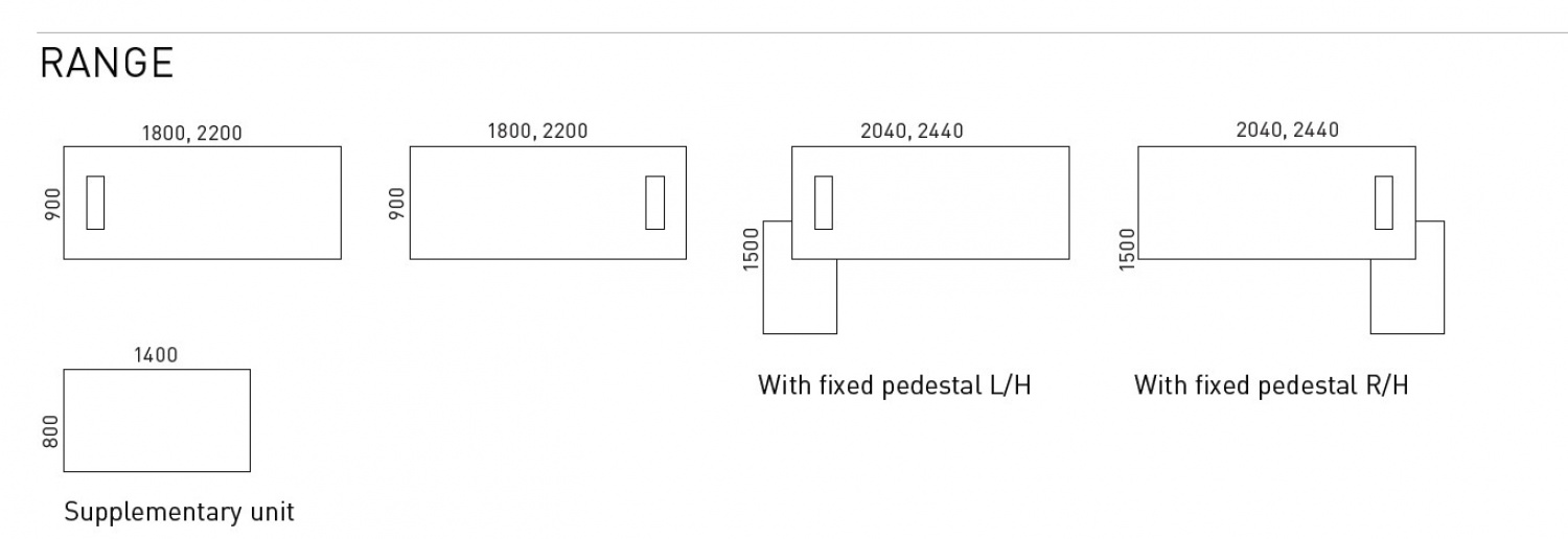 Italský design stolů je založen na harmonii přímých a zakřivených kontur. Elegantní třídílné ohýbané kovové podnože jsou vyrobeny pomocí pokročilé technologie a jsou hlavním charakteristickým rysem systému.