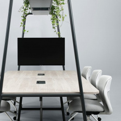 Držáky monitorů vám umožňují začlenit technologii do vašich zasedacích prostor, zatímco bílá tabule vám umožní zapsat jakékoli nápady, které máte, a dosáhnout tak lepší spolupráce.