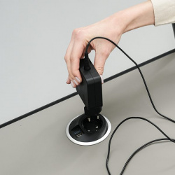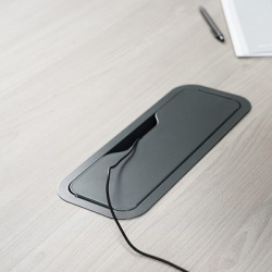 Přípojná místa pro stoly hluboké 1000 mm lze integrovat do stolových desek. Potřebujete-li více zásuvek, zvolte stůl s kabelovým žlabem pro umístění větší napájecí jednotky.